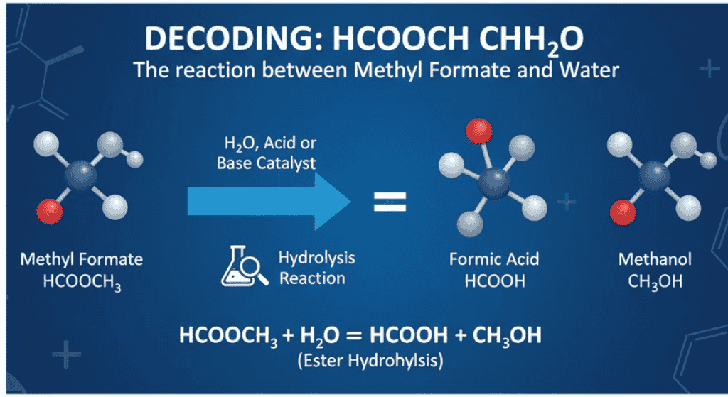 The expression hcooch ch2 h2o combines fragments that point to the interaction of methyl formate with water. Instead of being one compound, it represents a chemical process.